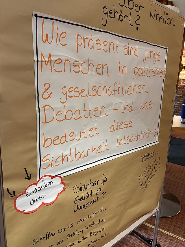 Der Fachtag war, neben dem fachlichen Austausch auf Landesebene, gerahmt von einem spannenden Impuls zur Wahrnehmung von Kindern und Jugendlichen die in einer alternden Gesellschaft aufwachsen müssen und der Vorstellung des Modellprojekts "Jugendcheck" aus Thüringen. Der Jugendcheck gibt Gesetztesentwürfen in Thüringen eine Perspektive über die Auswirkung des Vorhabens auf die Lebenswelt von Kindern und Jugendlichen. Bei besonderer Relevanz werden Kinder und Jugendliche in den Prozess eingebunden.
