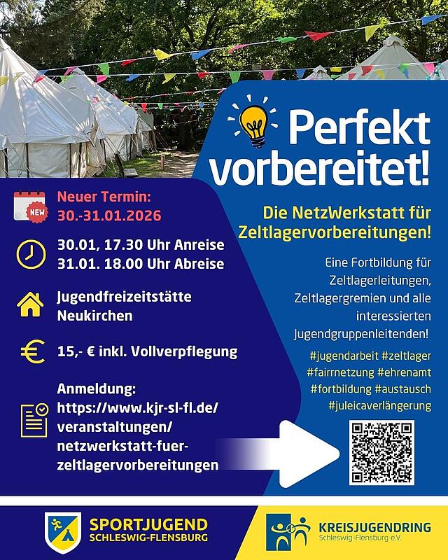 Die Fortbildung richtet sich an alle Ehrenamtlichen in der Jugendarbeit, die ihr nächstes Zeltlager motiviert, strukturiert und mit frischen Ideen vorbereiten wollen. Egal ob Zeltlagerleitung, Mitglied im Gremium oder engagierte Betreuende – wir freuen uns auf alle Interessierten ab 16 Jahren.